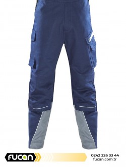 Tasarım: Streç askılar, kapaklı ve çıtçıtlı ön cep, fermuarlı pat, 2 yan cep, akıllı telefon cepli sol kargo cep, her biri kapaklı ve çıtçıtlı, önlük ve pantolon bacaklarında yansıtıcı şeritler bulunmaktadır.